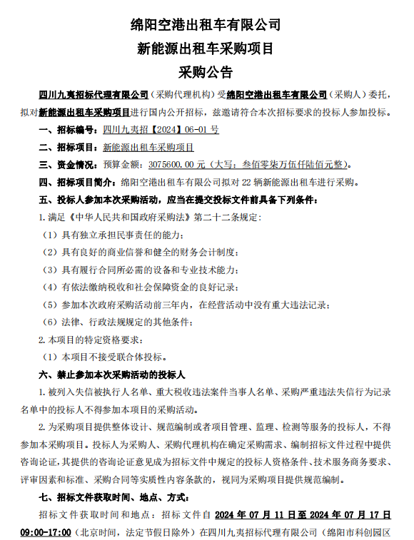 綿陽(yáng)空港出租車有限公司新能源出租車采購(gòu)項(xiàng)目采購(gòu)公告